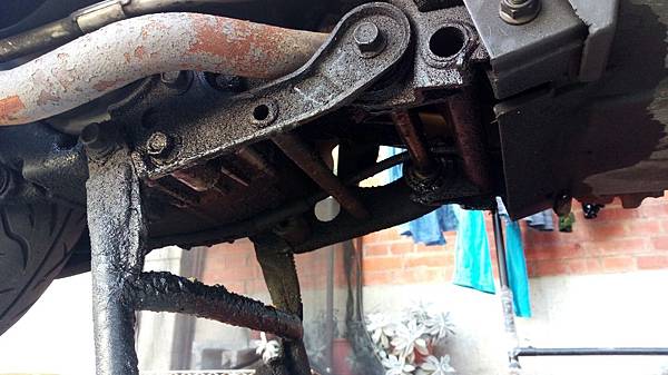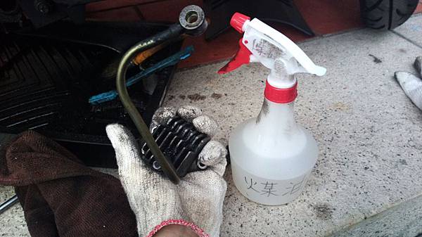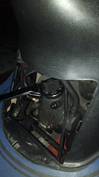見到這種情形的我,當然是發揮工程師功能,把家人的機車整理一下,讓她可以安全騎上路~前幾個月有整理過一次,把車殼跟開關等等零件換過,所以圖片看起來機車似乎挺新,其實...看到車底下,滿滿的都是油泥...