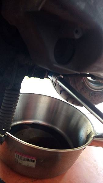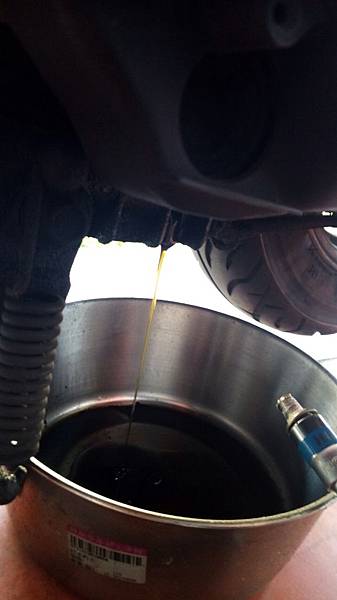 機油是一絲慢慢的流下的,看起來沒有黑,因為上個月才換過