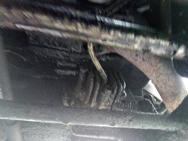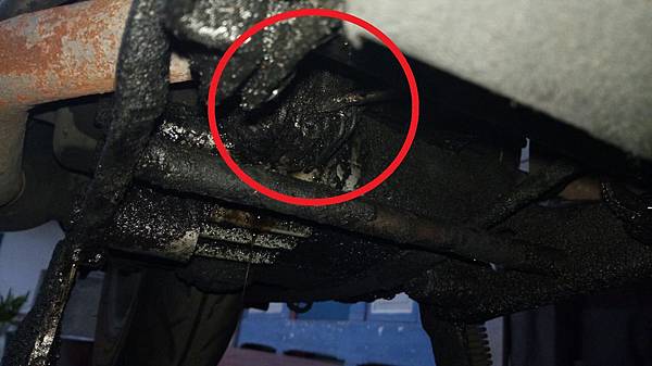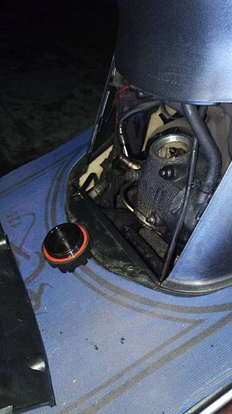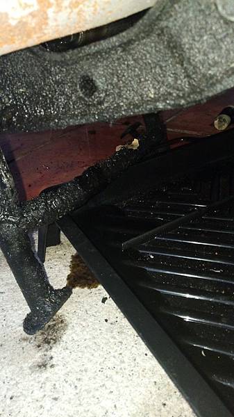 機油濾心的大概位置用照相機有點難拍出來...大約在排氣管旁邊一顆類似散熱片的東西(不過我努力拍了了),年久失修已經變成一坨骯髒神了
