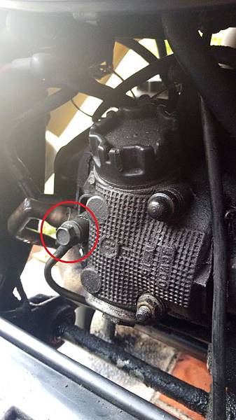 你會發現這顆螺絲鎖著一根管,沿著這根管往下摸索,這根管的終點就是機油濾心蓋