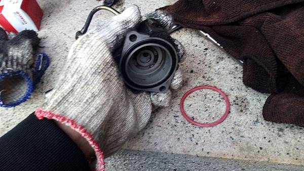 最後用抹布擦拭之後,把O型環更換掉,用個尖尖的東西把它勾出來(原本的已經扁掉,不知道有沒有作用)