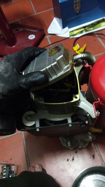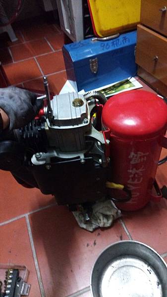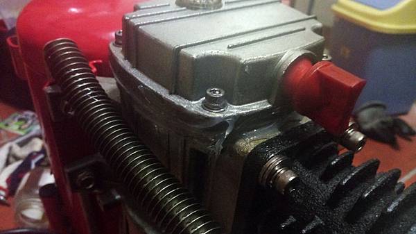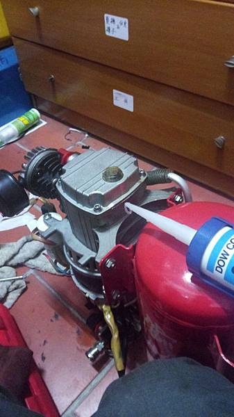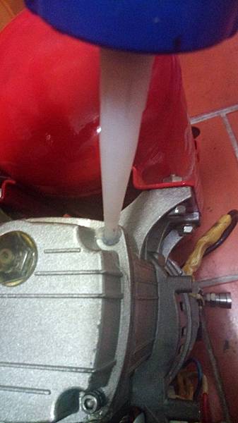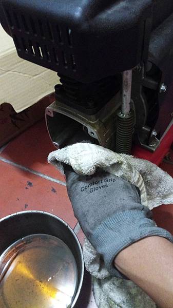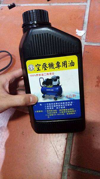 鎖完,加入空壓機專用油(機械五金行都買得到,一罐約150左右)