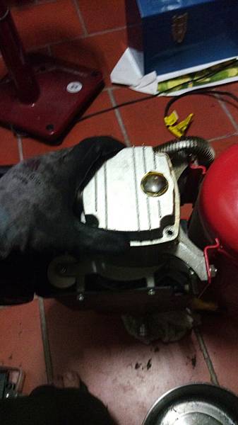 油箱蓋打開是長這樣的,左手拿著油箱蓋,裡面黑色油油亮亮的就是軟軟的橡膠皮,而油箱裡面就是曲軸