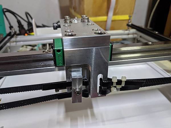 CoreXY結構的皮帶鬆緊調整機構很重要,我有特別設計過可以用螺絲調整鬆緊度