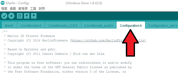 打開Arduino IDE之後,進入Configuration.h的頁籤裡面