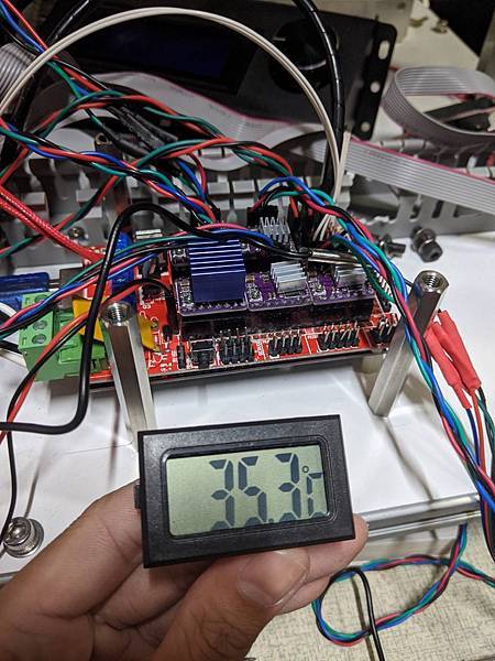 我把溫度計放在驅動板上面,量測溫度基本上都在40幾度快50度