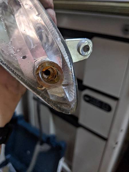 可以看到小燈裡面有積水,而且螺絲也銹死了,立馬出門買個螺絲把它們換掉