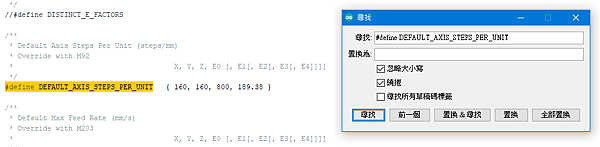 我們要補正的呢,是步進馬達每1mm時要走幾步,我們首先打開 Arduino 裡面的 Configuration.h 頁籤,鍵盤Ctrl + F 尋找: