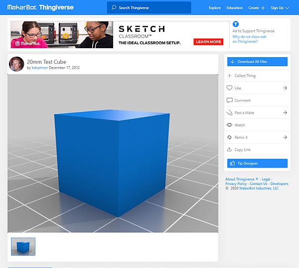 我找了網路上常見的20x20x20立方體(範例)