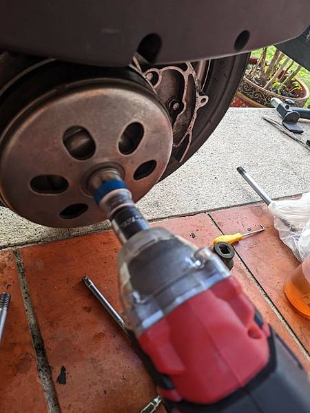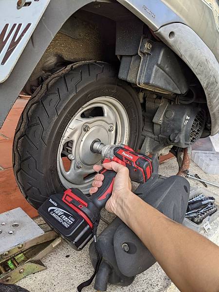 使用24mm套筒拆後輪,這次我用新買的衝擊板手,很輕鬆就拆下來了(只是衝擊聲有點吵)