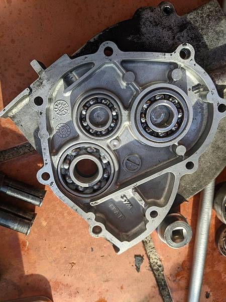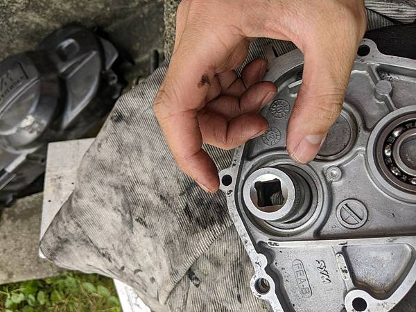敲出離合器軸之後,會發現這顆軸承緊緊貼在軸心上,用逼猴把它請出來
