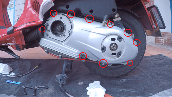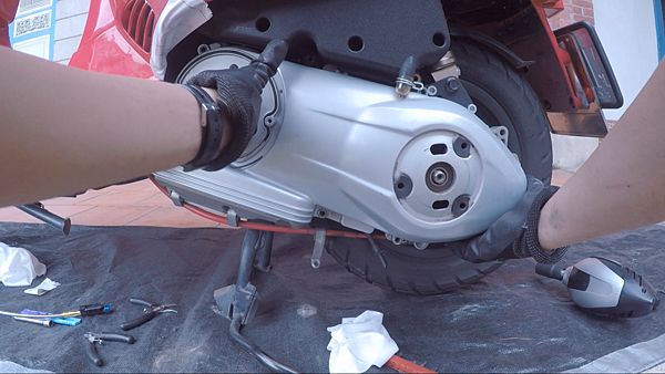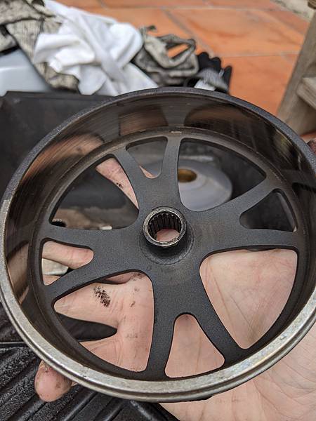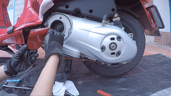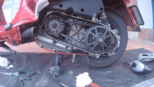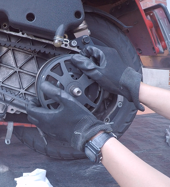 基本上皮帶輪沒有問題,那我就開始拆排氣管、後輪、煞車來令片再繼續測試