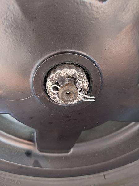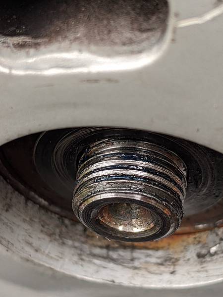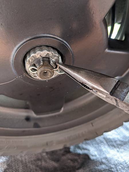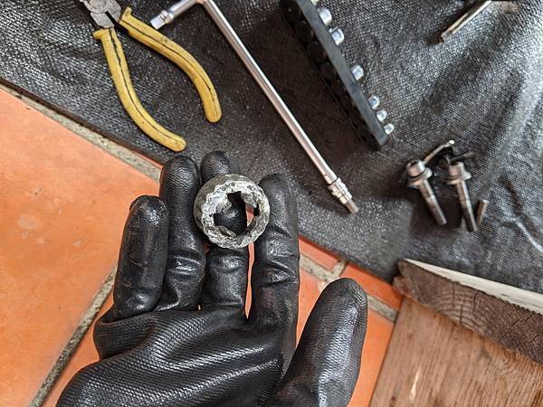 使用19mm套筒把楓葉盤螺帽打下來,這顆螺帽有墊兩片墊片