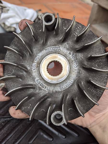 從碗公外型判斷上一位車主有更換改裝品,或許齒型有點不合用,所以安裝的時候卡卡的?其他零件基本上都沒有問題