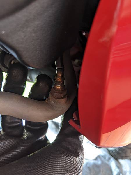 不要急著拆另外兩顆螺絲,先把含氧感知器接頭拔出來