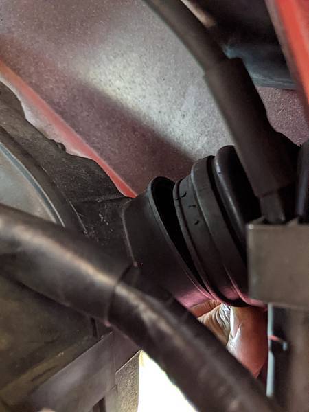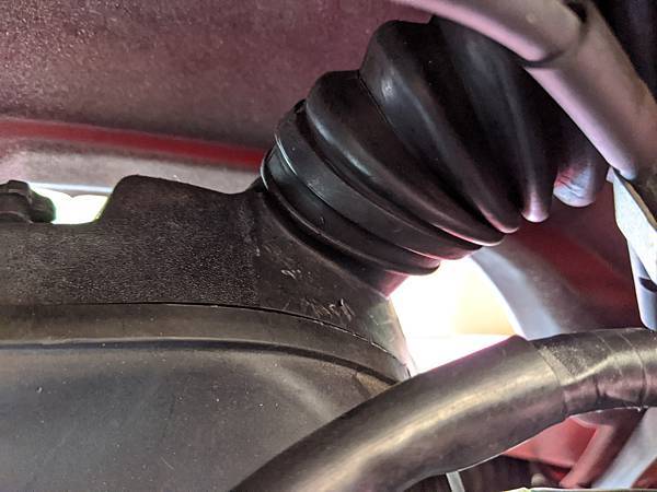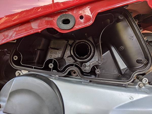 還沒完,再把頭探進去看空濾盒,會看到這根粗管子連著空濾盒蓋(這根管會束著束帶,只是我忘記拍照)