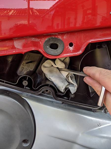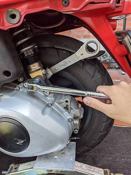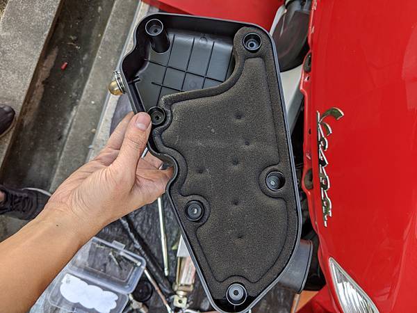 如果擔心板金傷到空濾盒蓋,想要更完美優雅的取出它,可以考慮把後避震拆掉,撐高車架再拆