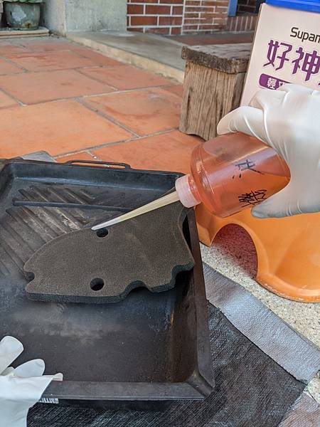 晾了一整天,用油抹一抹(有看過國外網友用機油,或者有專用的空濾油,附著力比較強)
