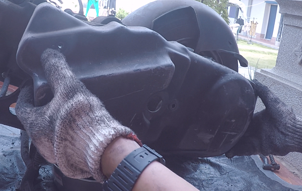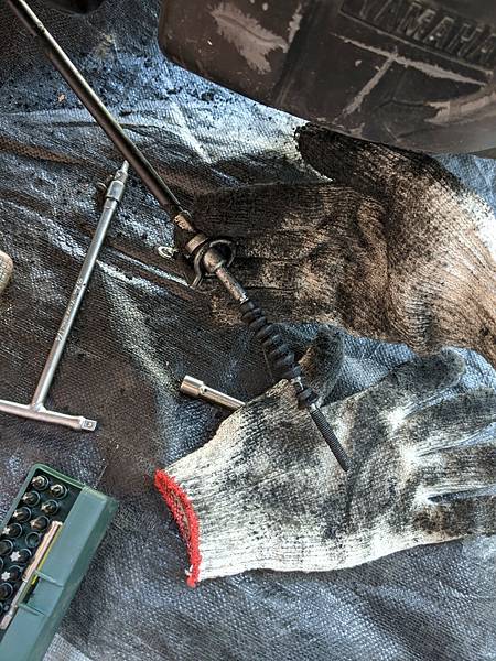 超髒的,表面覆上一層約3~5mm的油泥層,只是這樣落引擎就讓我的手套由白轉全黑