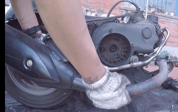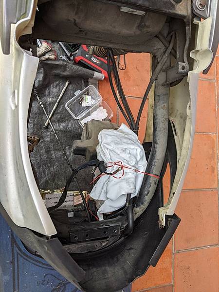 要整修引擎,一切要從落引擎開始,之前有落高手125的引擎,可是那台車是噴射車,現在這台是老化油車,不太一樣,但是老化油車要拆的線路很少很少,所以反而比較簡單一點