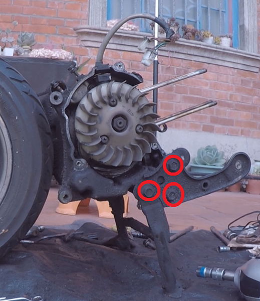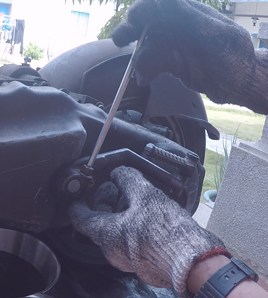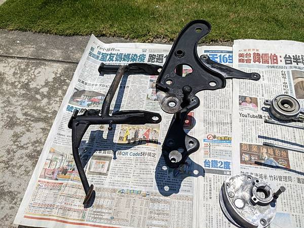 把引擎翻起來,安裝後輪來令片