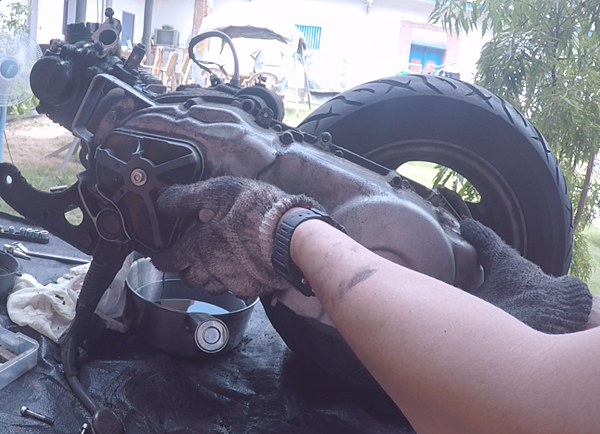 休息完了,繼續動工,落引擎之後第一步先來洩機油