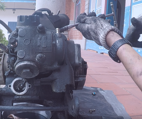 拔出機油泵外蓋小技巧,先在上面鎖一根長螺絲