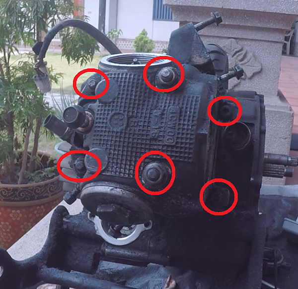 拆卸前面4顆螺帽+後面兩根內六角螺絲,拆卸汽缸頭