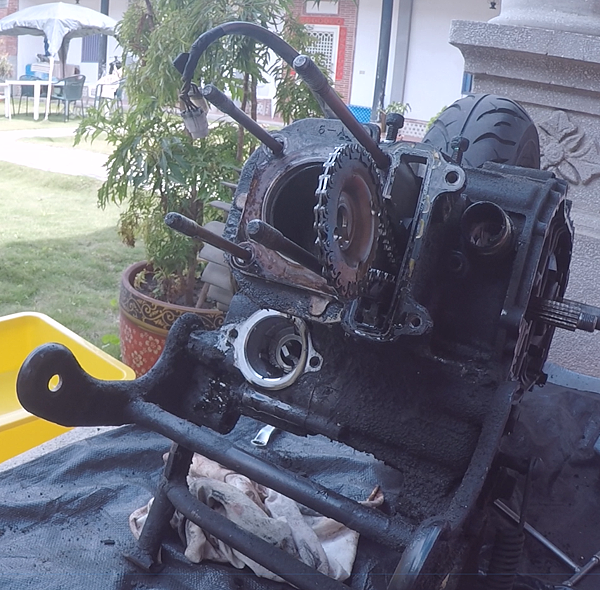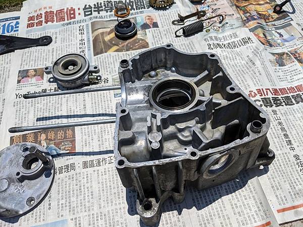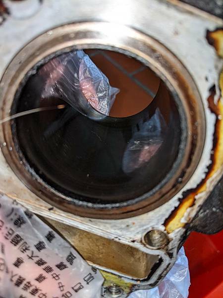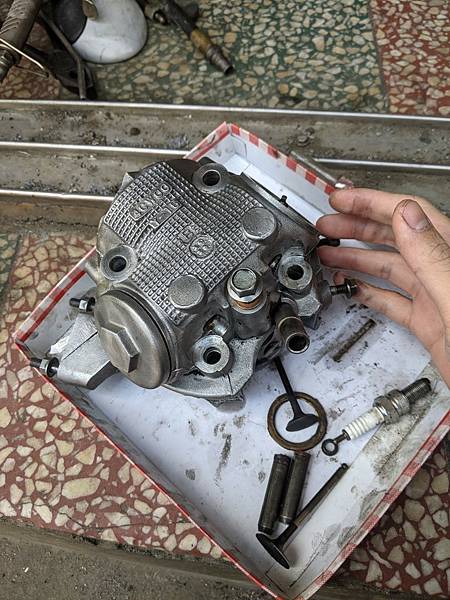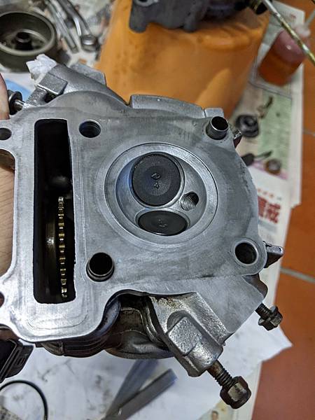 如果硬是裝上去發動,恐怕崩裂的碎片在引擎裡面傷曲軸到時候又要拆曲軸去搪缸店我可不要,於是就又停工了...。