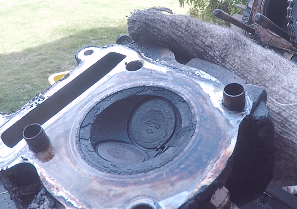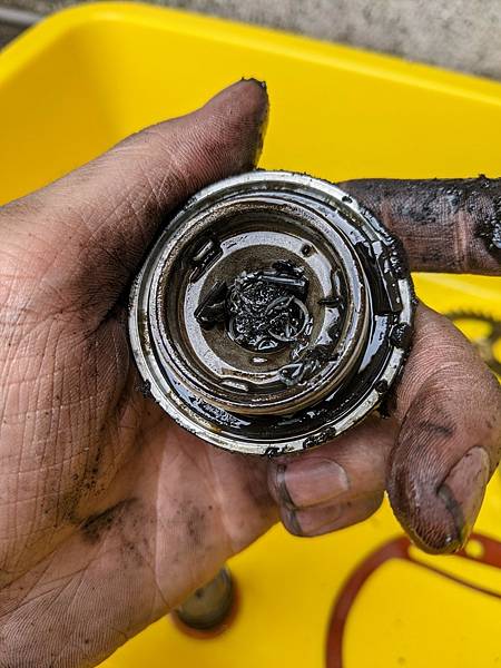 裡面很壯觀...那塊磁鐵吸飽了所有鐵屑,救了這顆引擎一命...