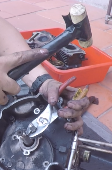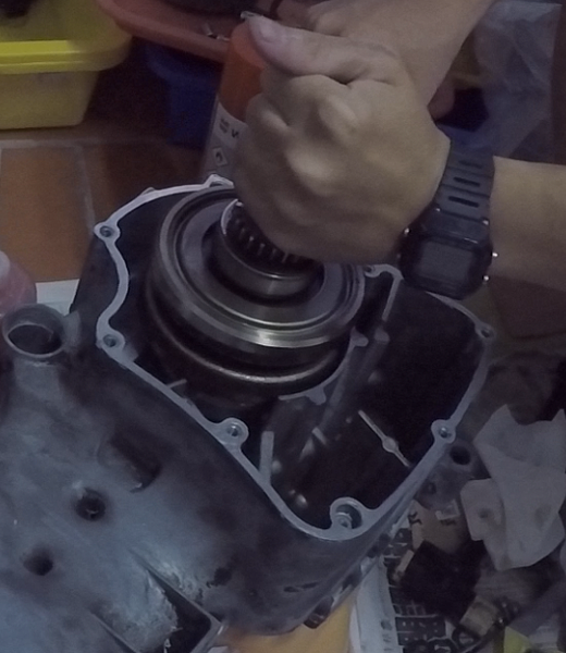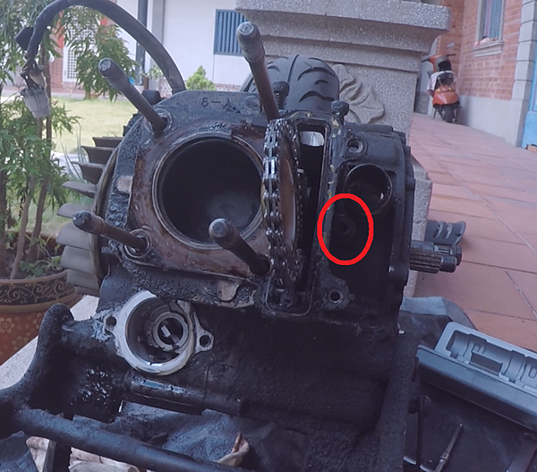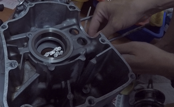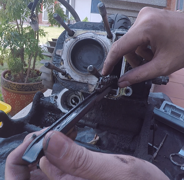 接下來準備安裝汽缸,記得先確認內鏈條有沒有確實卡入曲軸的鏈條齒上