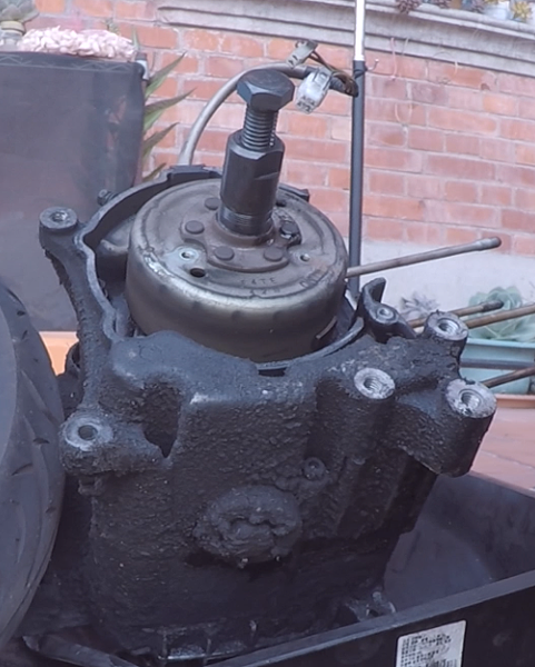 電盤裝上特工,用火焰板手撞出來 (這特工的牙很細,而且是左牙,記得上油鎖深一點,不然特工跟電盤的牙直接壞掉)