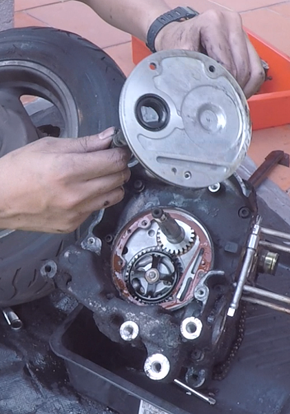 把正時齒盤鎖緊後,再次核對正時記號,鎖上原本的鍊條張力調整器之後,再次核對正時記號,然後也再次核對凸輪動作與汽門間隙之後,才把鳥仔蓋裝回去