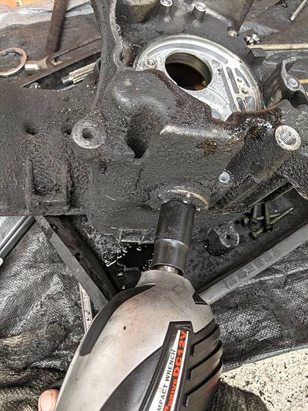 機油泵外蓋竟然是用皿頭的十字鎖的...也只能出動火焰板手暴力拆卸