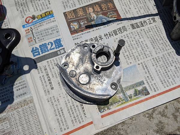 就在不能施工的期間,我也在思考為何正時齒盤會崩裂,思來想去,就懷疑起了當初買了副廠的鏈條張力調整器,拆起來與原本的做比對...結果....