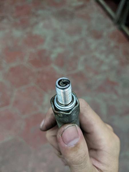 拔起來了,黑麻麻的火星塞