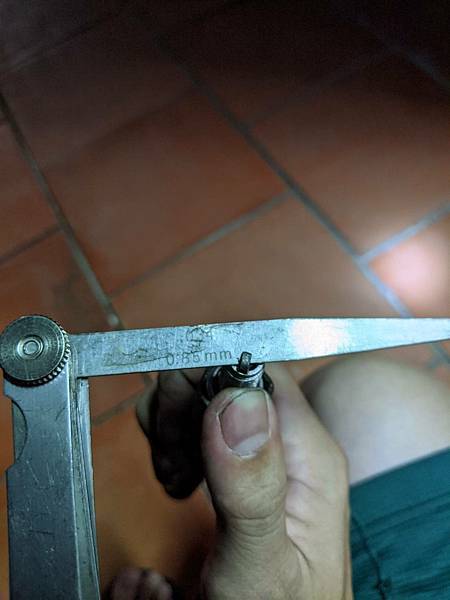 檢查火星塞間隙,以達到0.85mm,差不多可以換了,不過阿伯說急著要用車,所以先把它鎖回去看看
