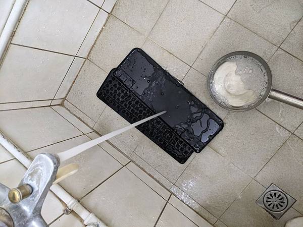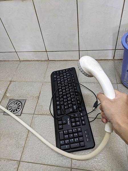 趕緊把桌子擦乾淨,鍵盤拿去沖水(示意圖)