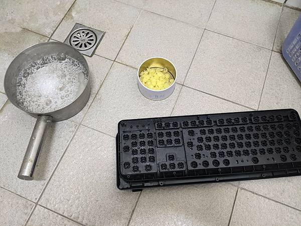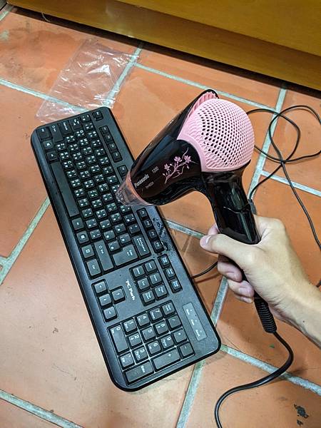 滿滿的奶茶從鍵盤縫隙裡面被洗出來...,洗完拿去外面曬太陽或者用吹風機吹乾(示意圖)