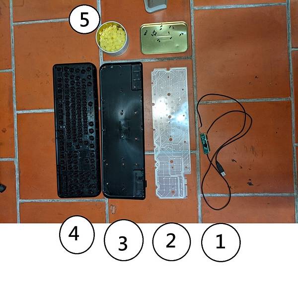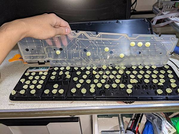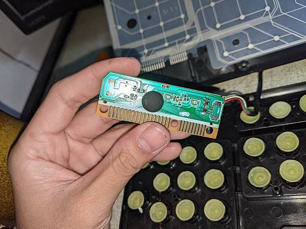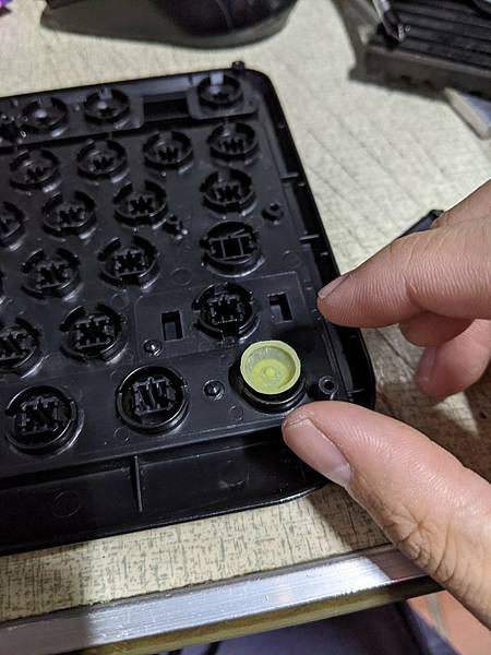 最上面一層是導電薄膜,底下那堆白色的東西是橡膠帽,每個零件都很重要別弄丟了