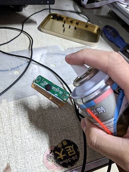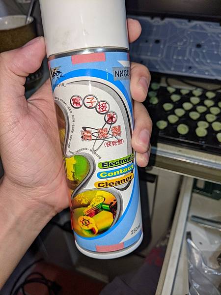 等待晾乾的期間,拿出電子接點清潔劑把電路板與接點噴一噴