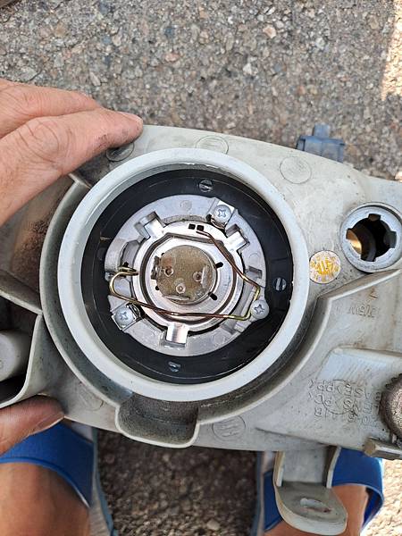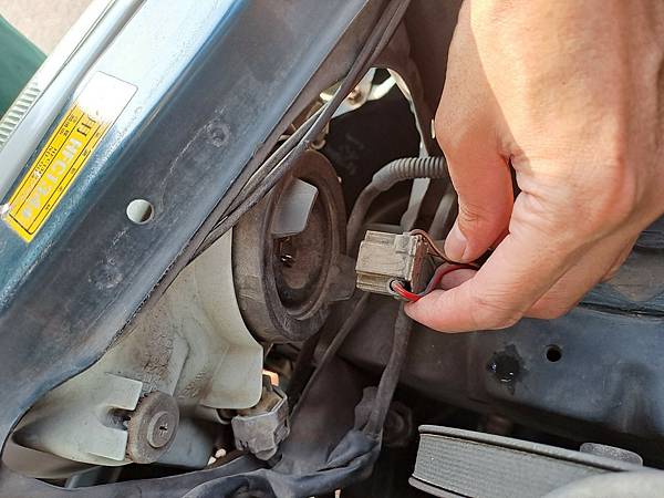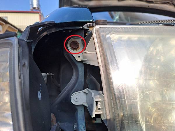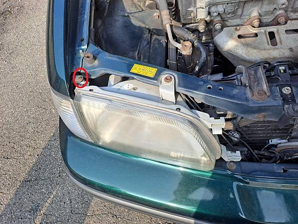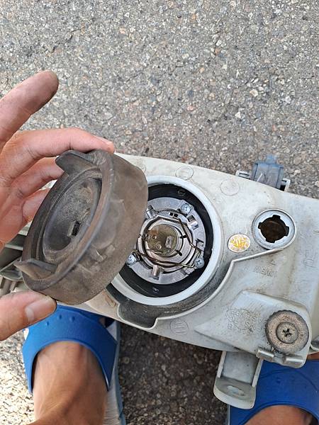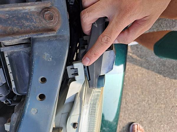 大燈罩旁邊有一顆十字螺絲,把它拆掉