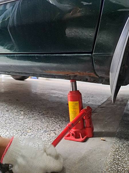 首先用千斤頂稍微把車子頂高
