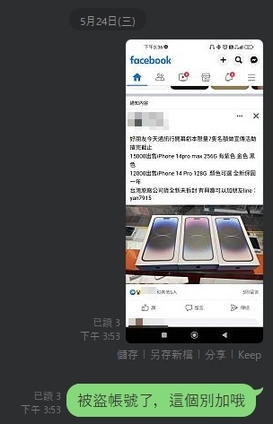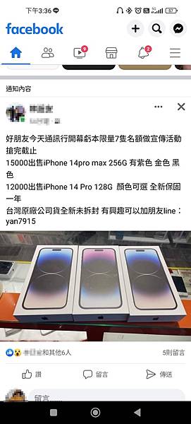 貼文內容大意是有便宜的iphone 14pro要便宜出售,有興趣可以加LINE好友...