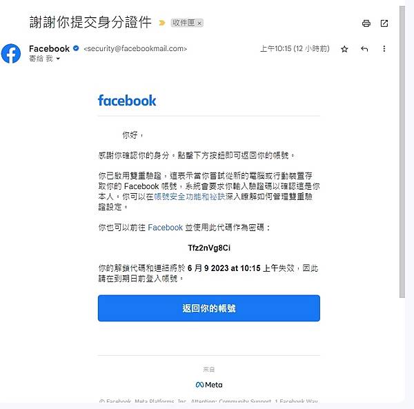其他驗證方式就是要拍身分證明文件上傳給臉書!?我心想這該不會又是另一起詐騙,我就沒有照做了