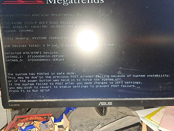 安裝上去後,發現總會跳出這個畫面(內容大致是說因為不相容,所以安全模式跳出,引導你到BIOS去設定)