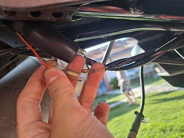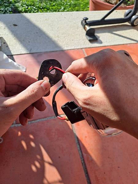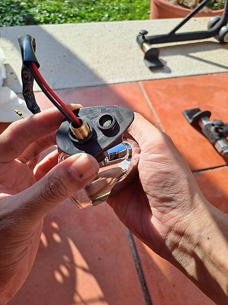將新方向燈跟固定片一起放進這裡,另一端用螺帽鎖起來