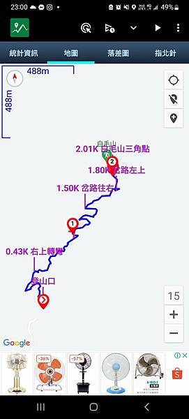 而我今天,要爬跟人家不一樣的路徑,要從白毛山林道直接騎車到約2/3的高度後直接抄捷徑登頂,走路的部分只要花2~3小時,整整少了一半時間,也少了1/3的爬升高度,路程從4.9K變成2K