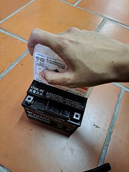 用一點力插入,確認電解液都灌入電瓶中,靜置20分鐘以上