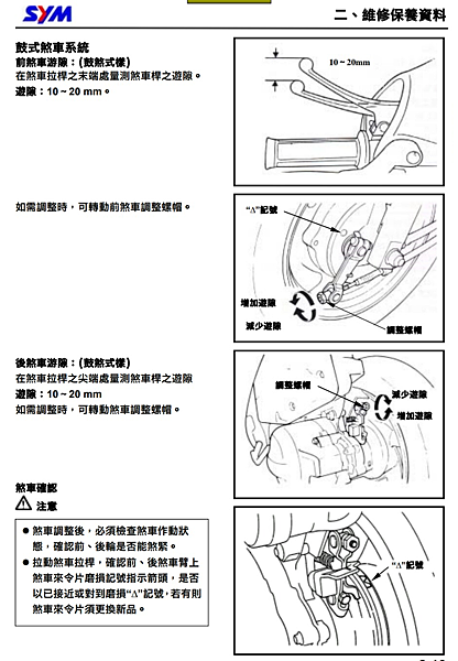 下圖是維修手冊中展示的煞車角度,其實只有1020mm游隙